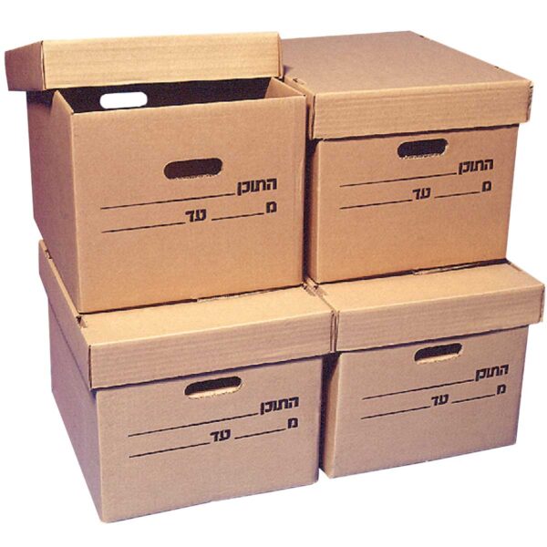 בכל קופסת קרטון מקום לרישום תכולה, תאריך וידיות נשיאה