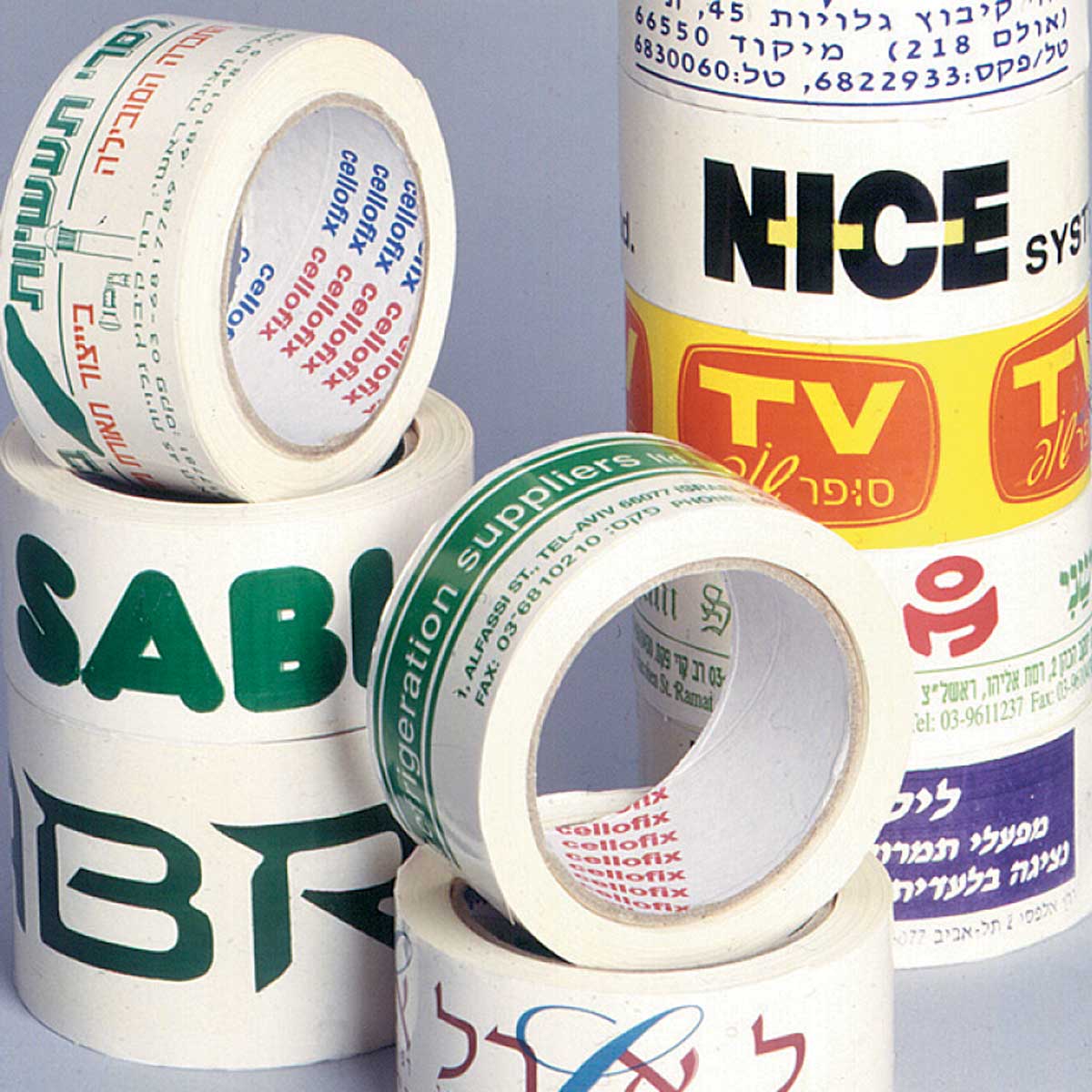סרטי הדבקה PVC מודפס שני צבעים עם לוגו החברה שלכם או כיתוב אחר שתשלחו אלינו