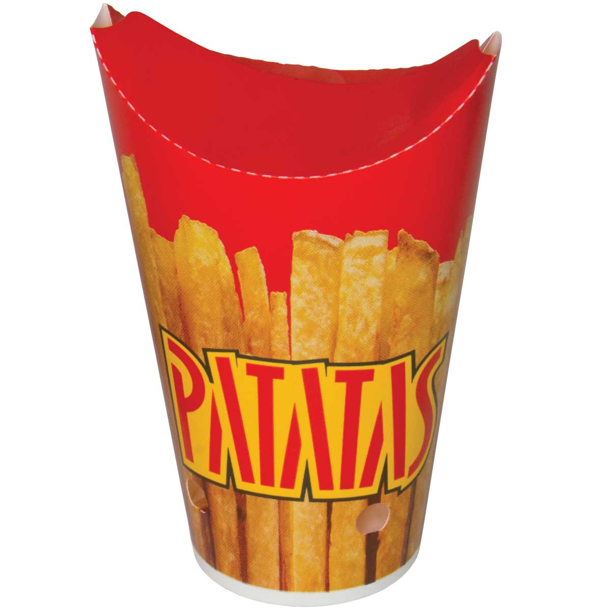 כוסות נייר PATATAS פטאטאס הדפס צ׳יפס – להגשת פטאטאס, צ'יפס וחטיפים מטוגנים אחרים