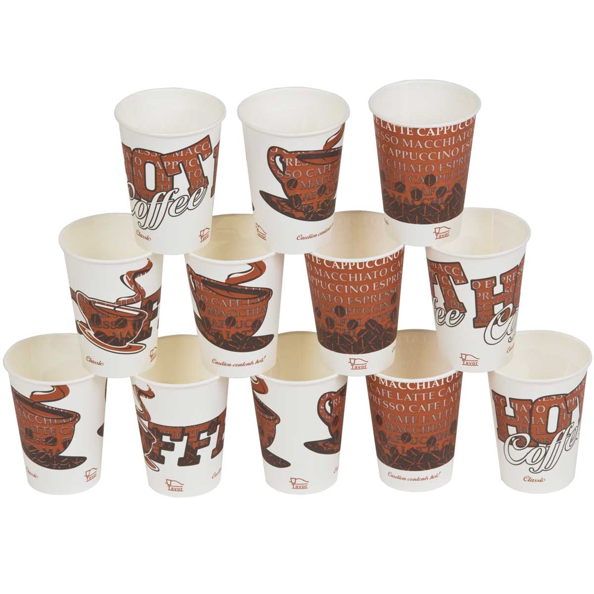 1000 כוסות נייר לשתיה חמה מסדרת קלאסיק Classic בעיצוב המשתנה בין הכוסות עם מוטיב עיקרי חוזר