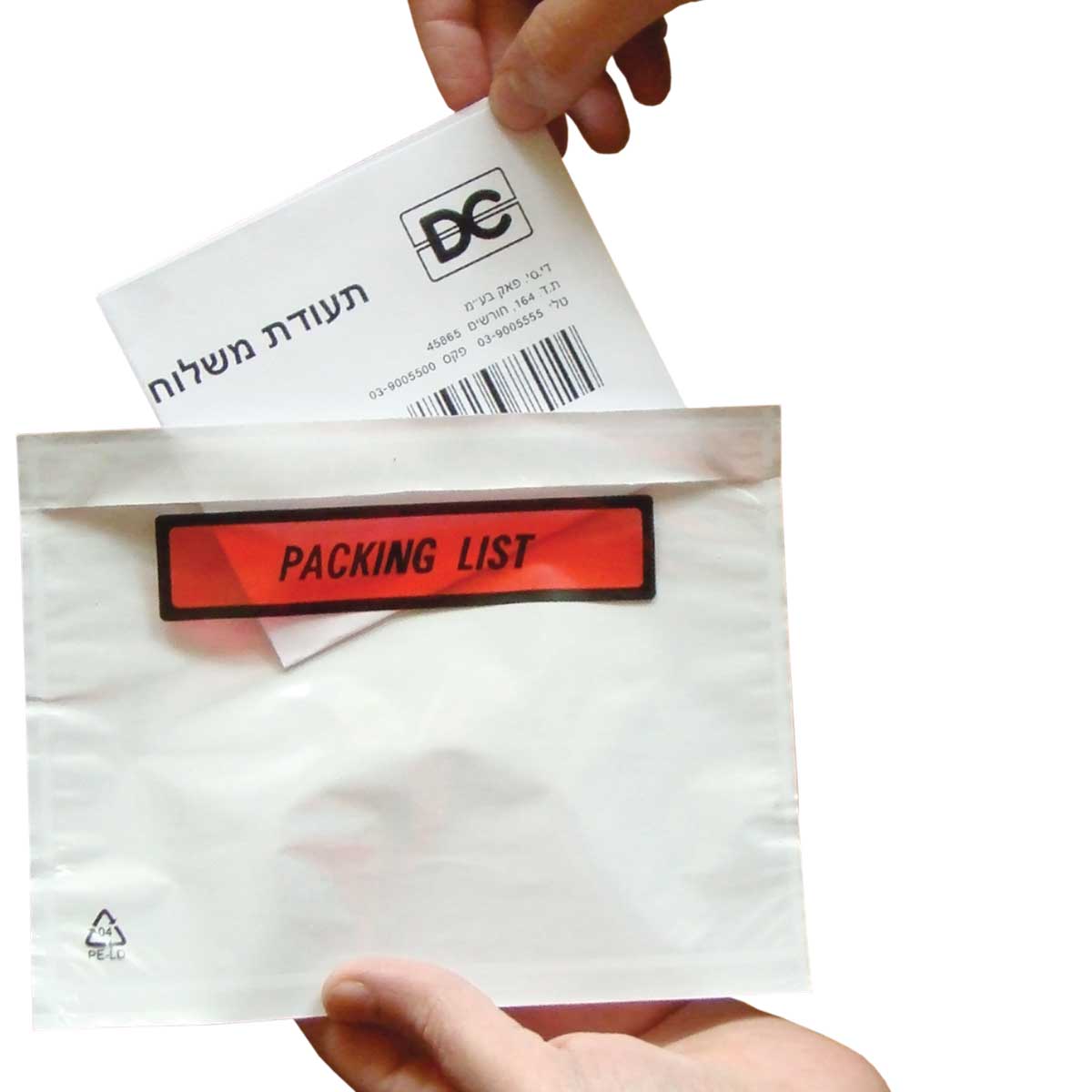 1000 מעטפות דביקות שקופות Packing List – המעטפה שקופה עם גב דביק